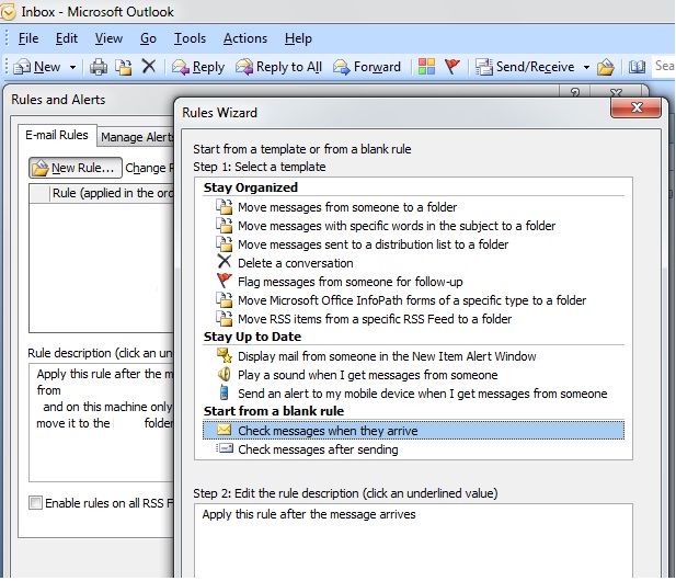 Step 2: Goto Tools Menu -> Rules and Alerts -> New Rule