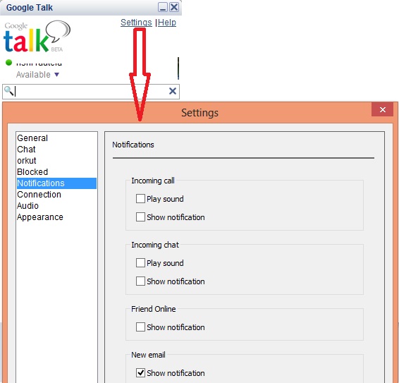 stop chat notification in google talk